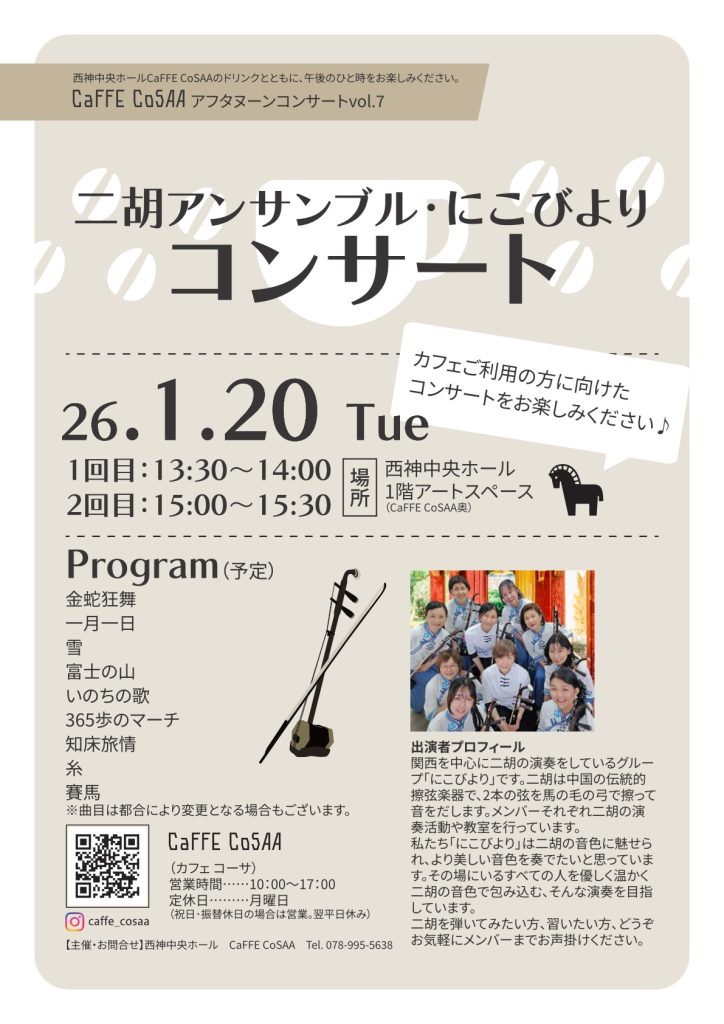 カフェご利用の方に向けた無料コンサート!