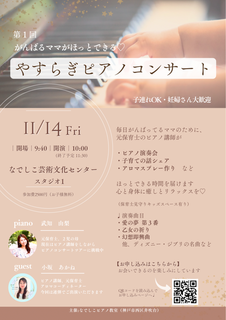 ・ピアノの移動および片付け・清掃はスタッフが行います。