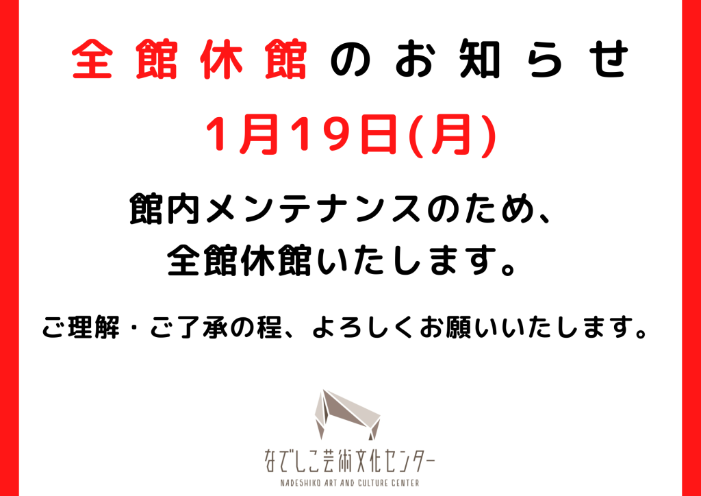 9/22(月)は、館内メンテナンスのため、なでしこ芸術文化センター・西神中央ホールは休館日となります。