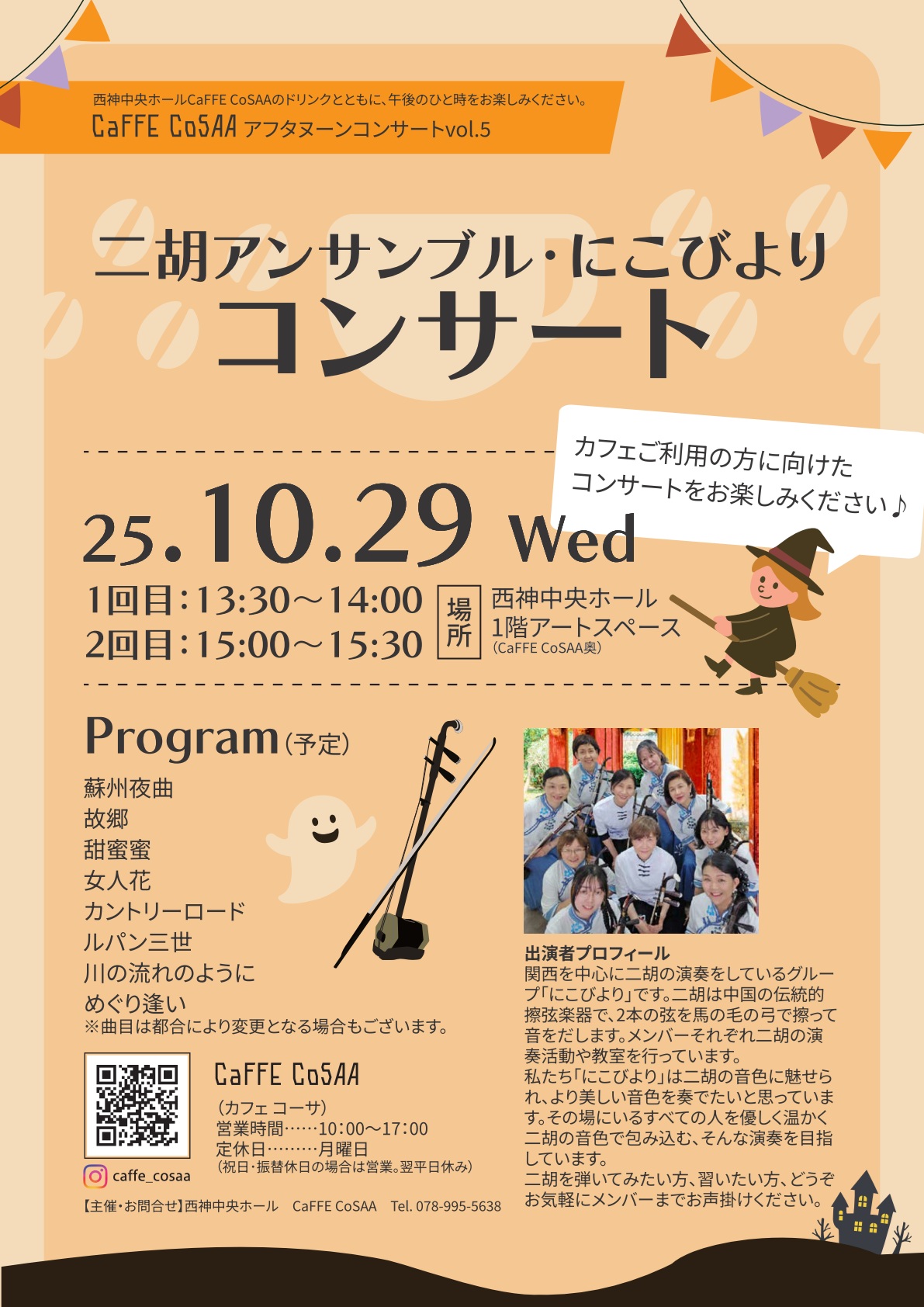 10月29日(水)13:30~/15:00~「二胡アンサンブル・にこびよりコンサート」