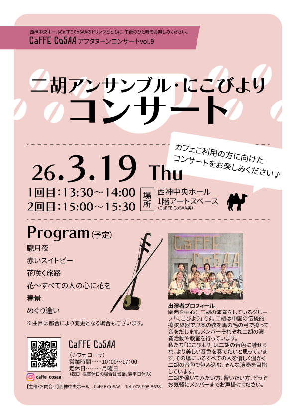 3月19日(木)13:30~/15:00~「二胡アンサンブル・にこびよりコンサート」